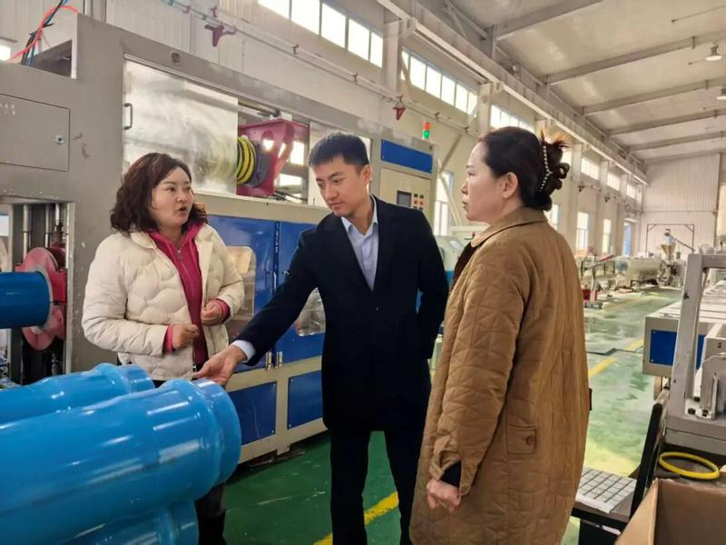 周忠全(左二)在企業(yè)了解情況。
